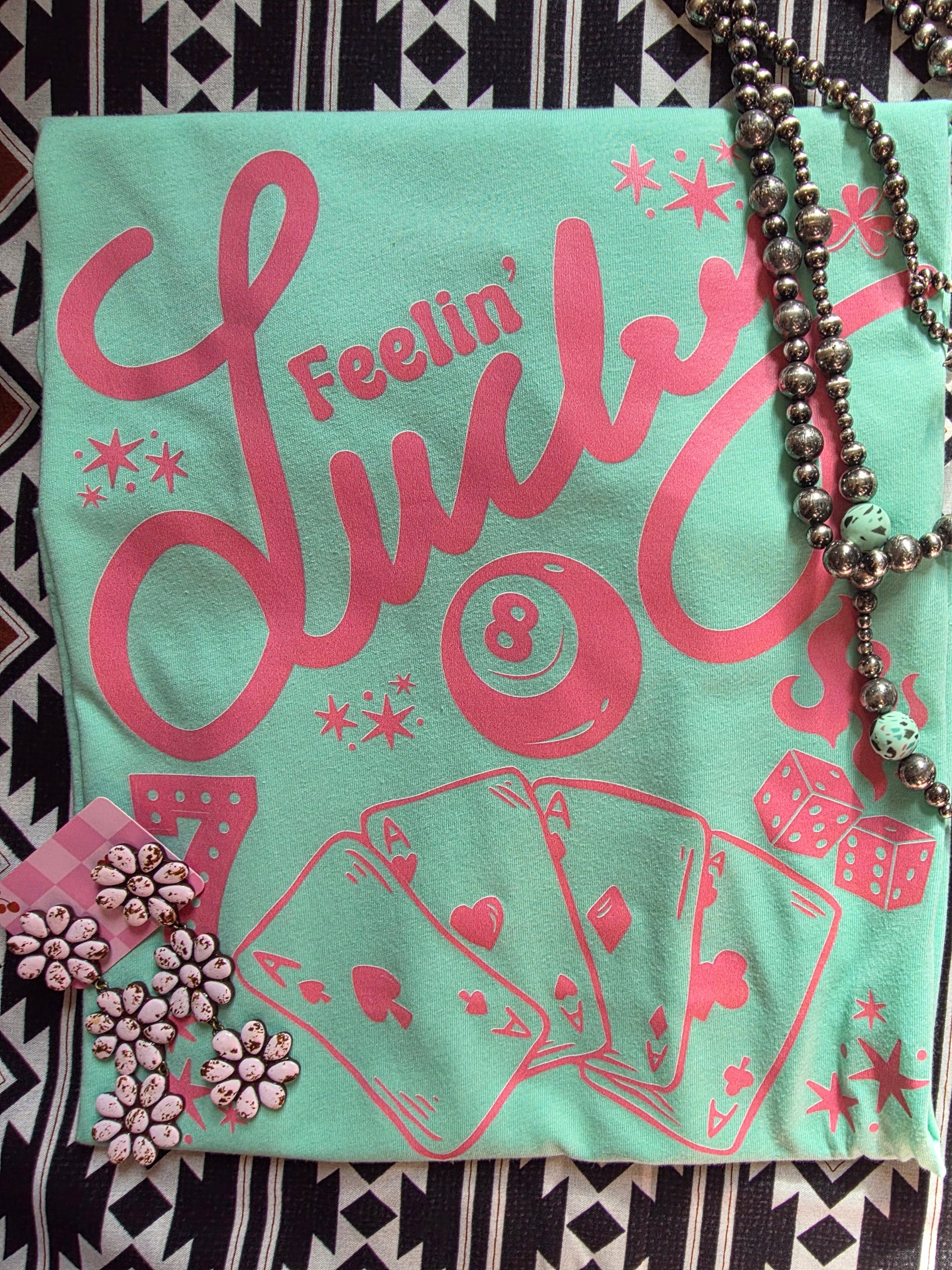 Crafted with high-quality materials, Feelin Lucky is a unisex shirt designed for comfort. Its crew neckline and short sleeves are perfect for everyday wear. Made on Bella Canvas with DTF Transfer, this shirt features a stylish design on the front. Embrace your luck with Feelin Lucky.