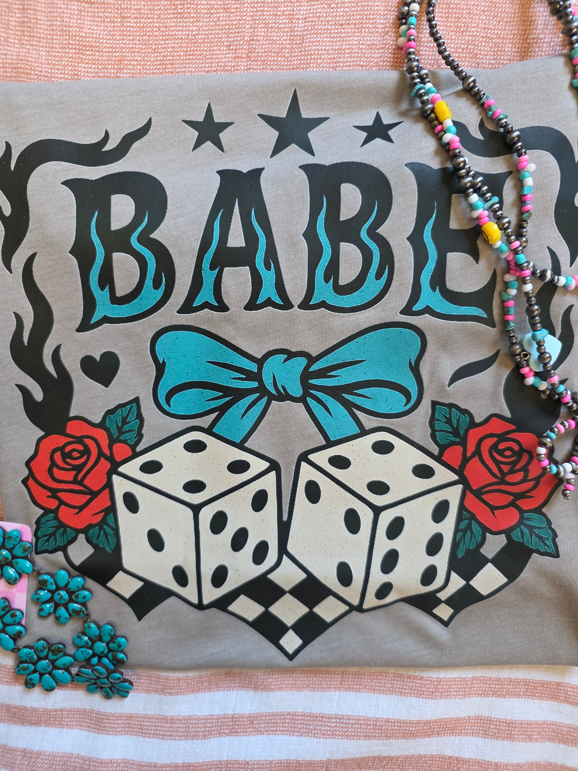 Expertly crafted with 100% cotton on a Bella Canvas, our Babe 🎲 shirt features a stylish crew neckline and short sleeves. The unisex design is true to size and enhanced with a DTF transfer for a lasting appearance. Perfect for any casual occasion.
